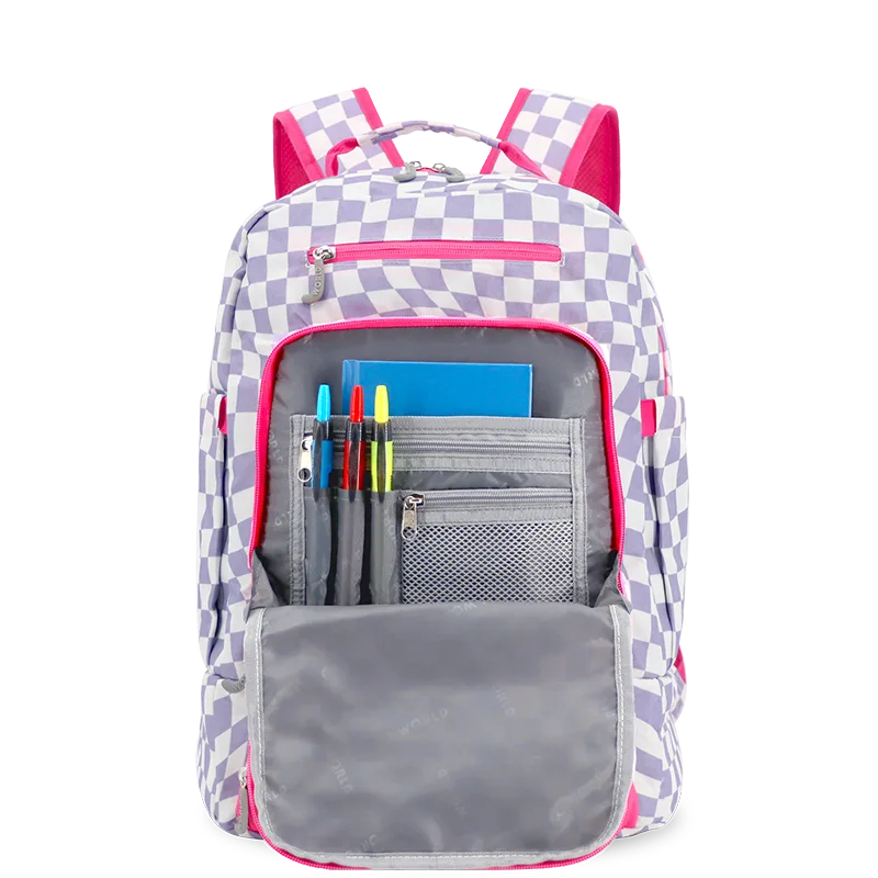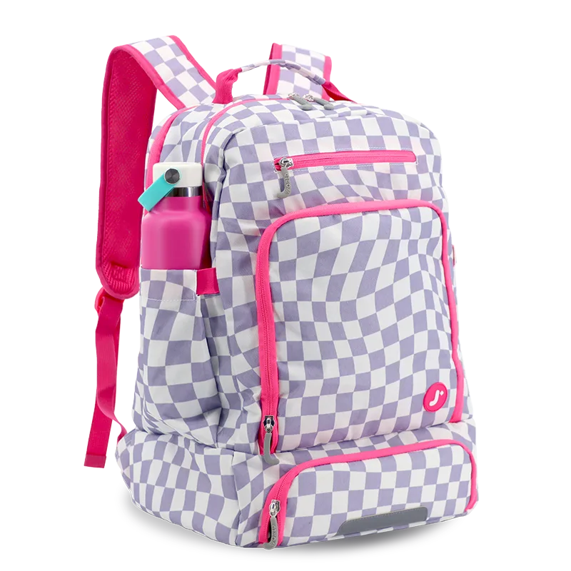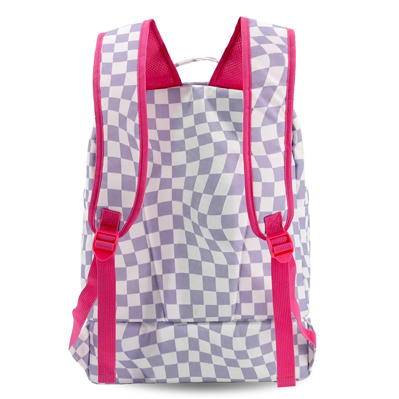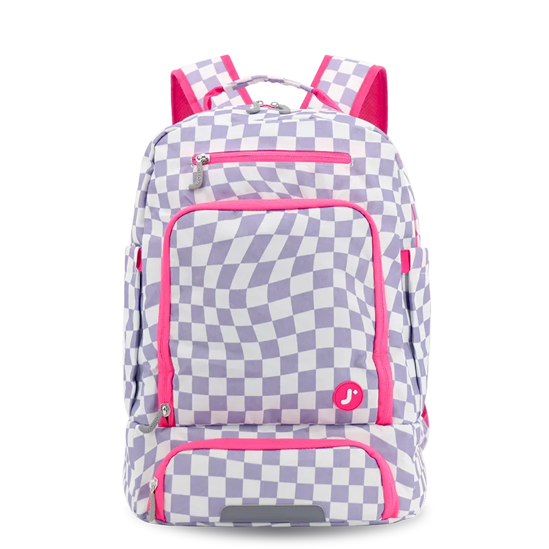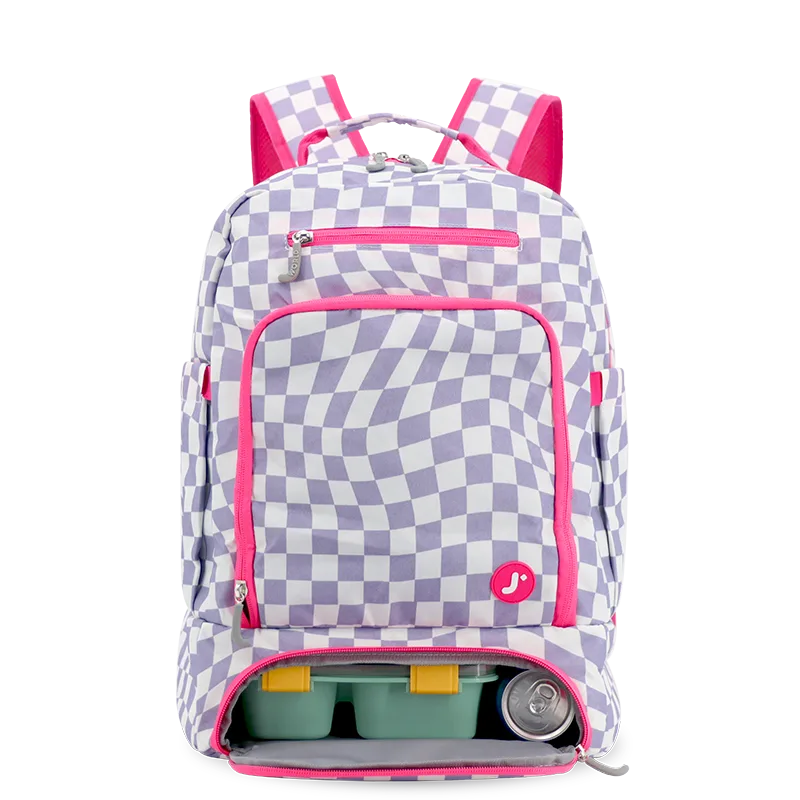 Packmate 2 in 1 Backpack With Built-in Lunch Bag in Lavender Checkers - JWorldstore