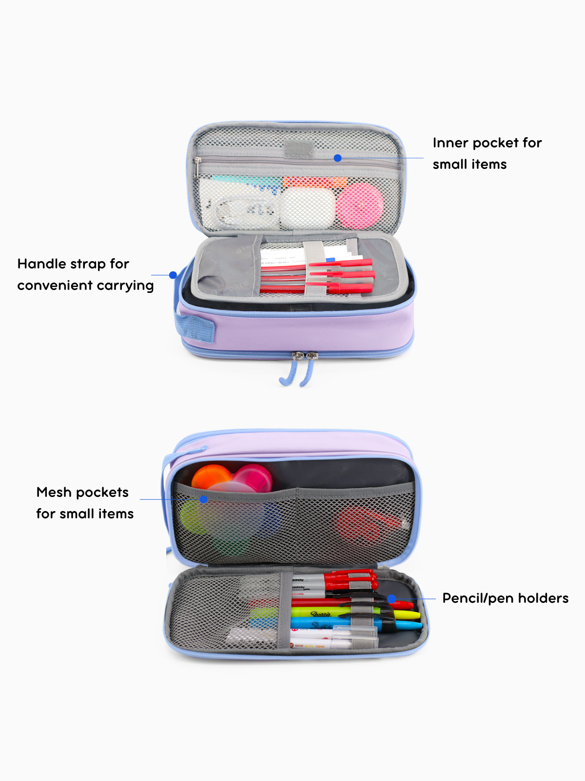 The Doodle Pencil Case combines functionality and style, with a spacious main compartment for pens, pencils, erasers, and more. Inner pockets, pen holders, and a handle strap offer organized, easy access. Made from durable, water-resistant material, it's perfect for school, work, or travel—keeping your stationery essentials protected and ready to use.