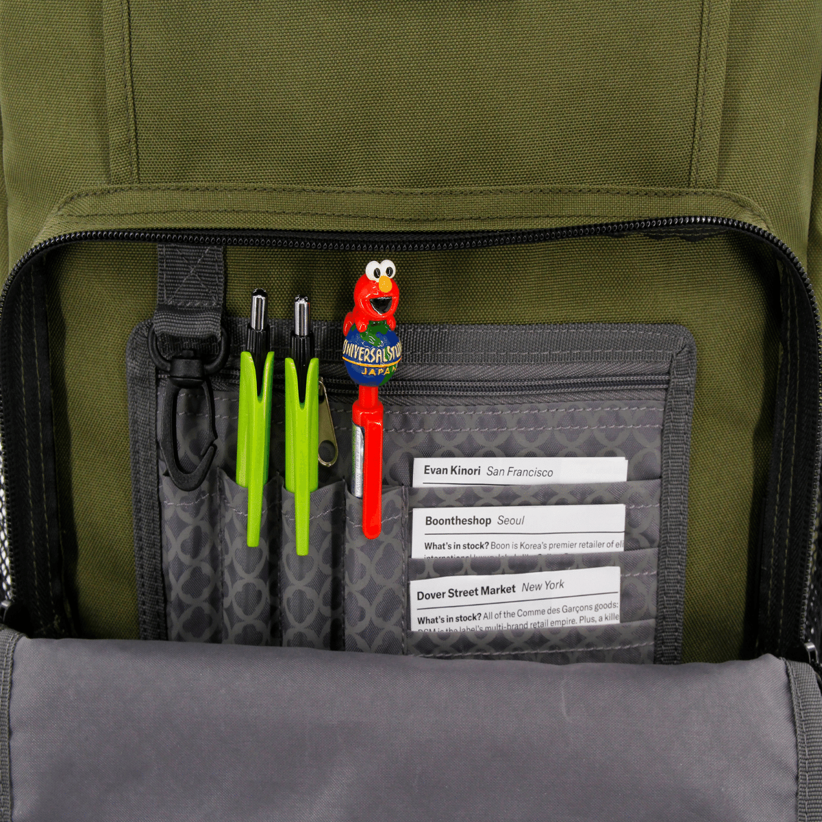 - Front Pocket Organizer: Includes pencil holder, key fob, and zipper pocket for easy access to essentials.